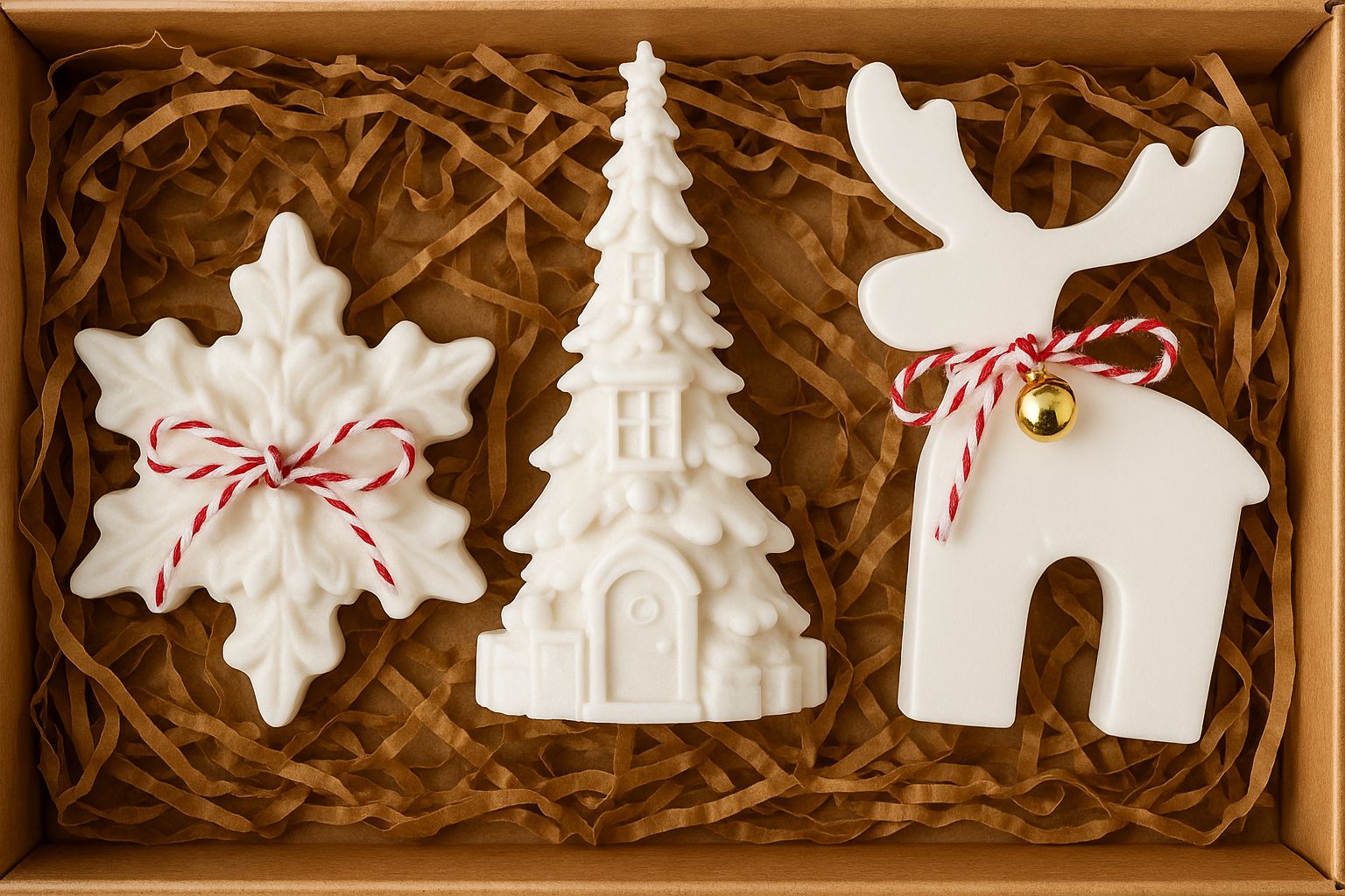 CANDLE El Yapımı Kar Tanesi, Çam Ağacı ve Geyik Figürlü Mum Seti – 3’lü | Soya Wax| Kış Koleksiyonu -Vanilya kokulu
