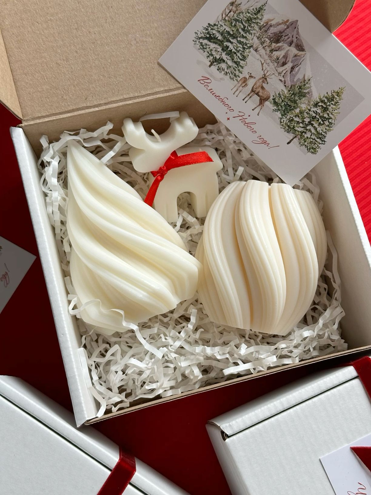 CANDLE El Yapımı Yılbaşı Çam Ağacı, Burgu Mum ve Geyik Figürlü Mum Seti – 3’lü Kış Koleksiyonu