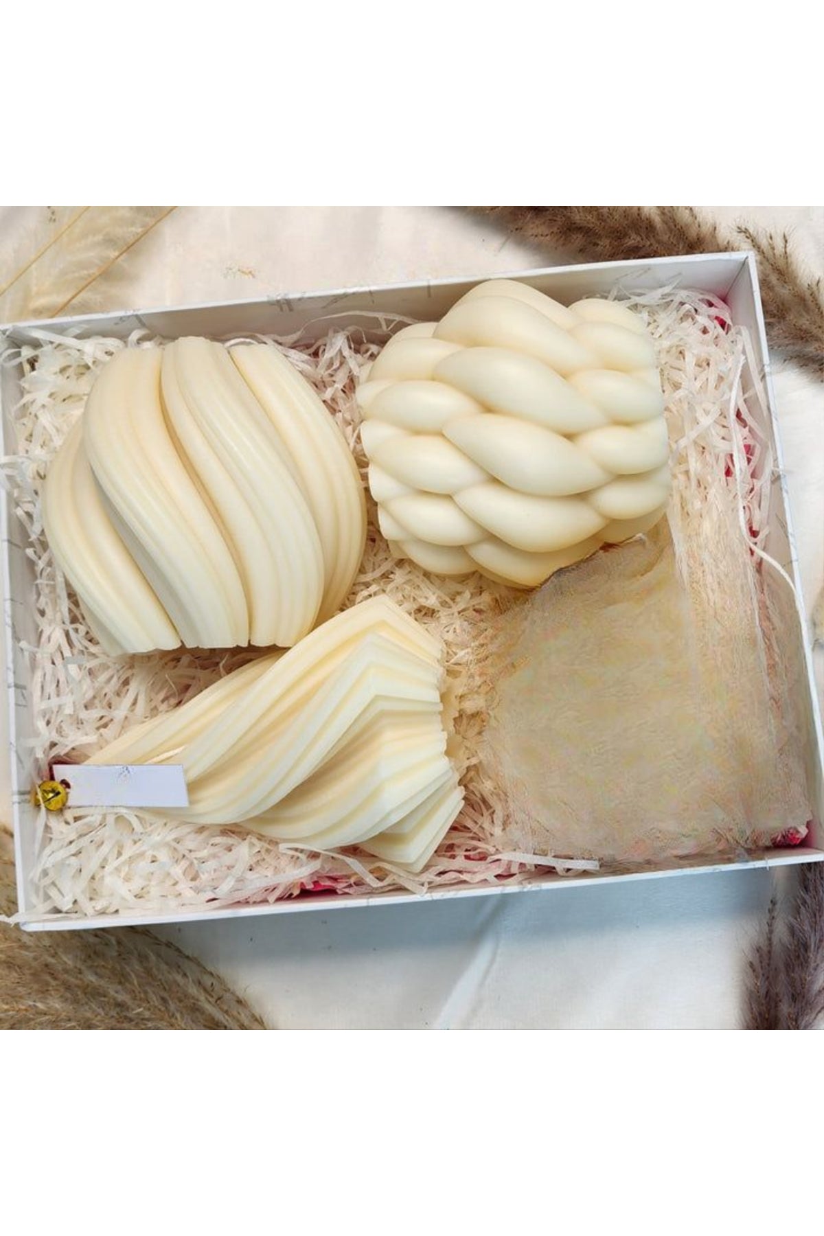 Kırık Beyaz renk ve %100 soya wax mum 3'li Takım