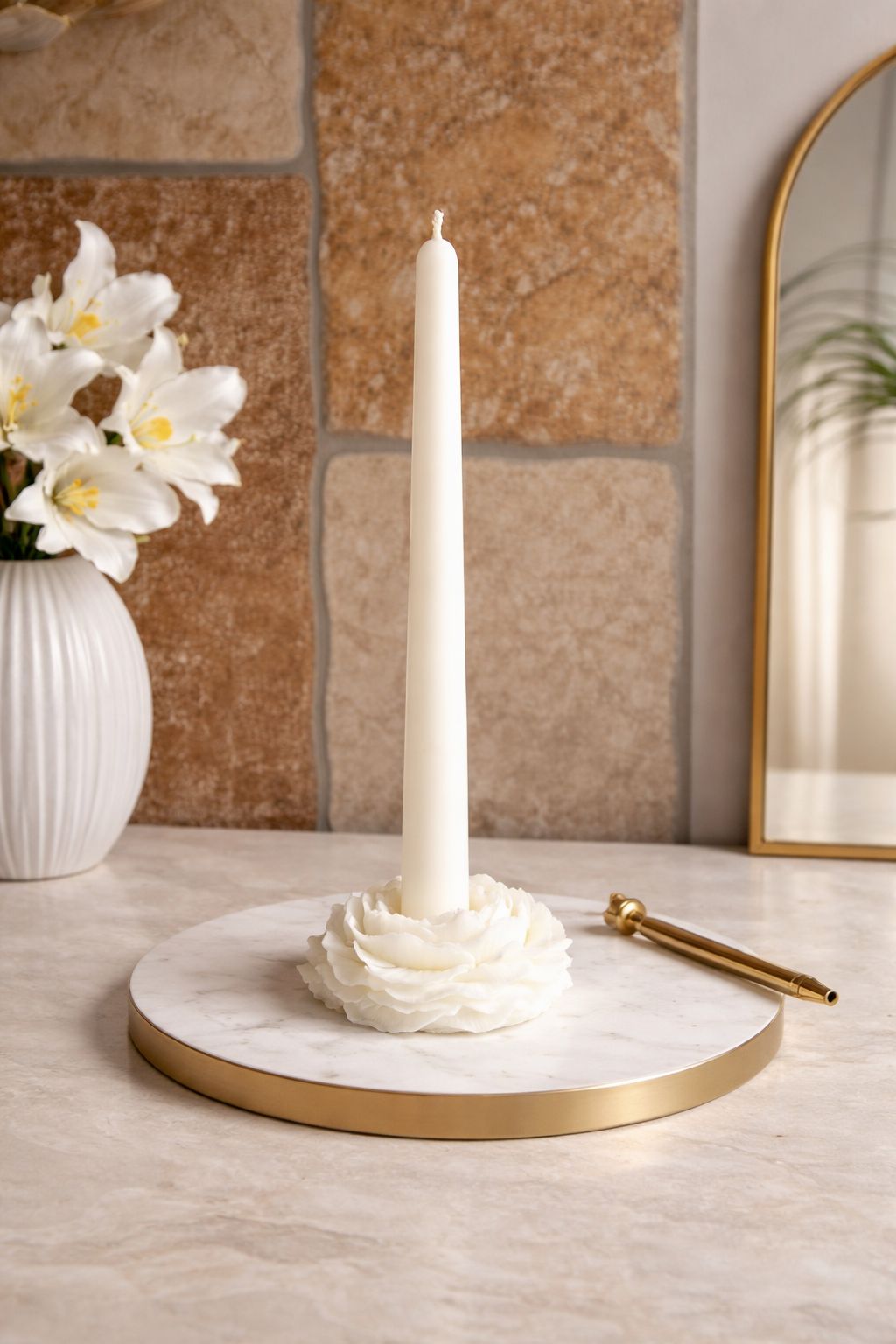 CANDLE El Yapımı Şakayik Gül Dekoratif Mum Kırık Beyaz 4*6,5cm- Şamdanlık Dekoratif Mum 20*2-Vanilya kokulu
