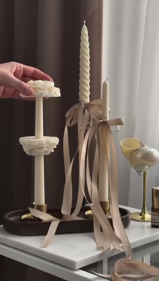-Sade Şamdanlık Desenli Dekoratif Mum 2 adet 22*2cm
