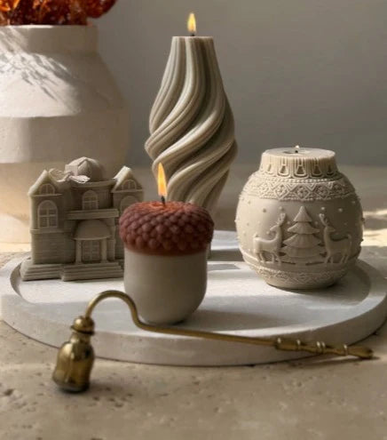 Yeni yıl ruhunu evinize taşıyan bu özel tasarım mum, doğal malzemeler kullanılarak elde üretilmiştir. Şık, minimal ve dekoratif görünümü sayesinde hem sevdiklerinize hediye olarak mükemmel bir seçenektir.
