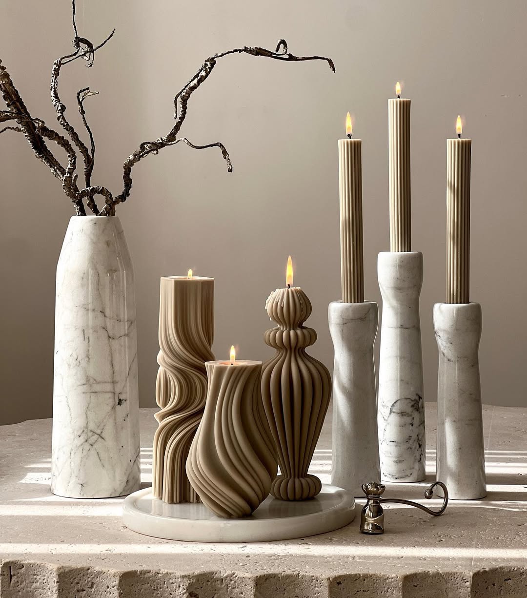 Dalga Mum 1 Adet + Marako 1 Adet + Vazo 1 Adet +Şamdanlık Mum 1 Adet - Topalm 6 Parça Takım
