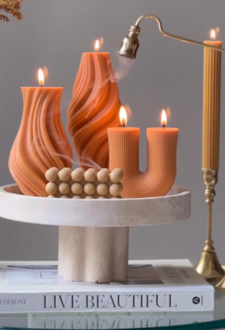 Dekoraitf Vazo Mum 1 Adet +Top Model 1 Adet +Vazo Mum 1 Adet +U model 1 Adet +Şamdanlık Mum 1 Adet - Topalm 5 Parça Takımı