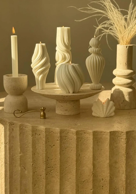 Dekoratif Marako Mum 1 Adet +Dalga Mum 1 Adet +Vazo Mum +Şamdanlık Mum 1 Adet +Deniz Kabuğu Mum 1 Adet - Toplam 6 Parça Takım