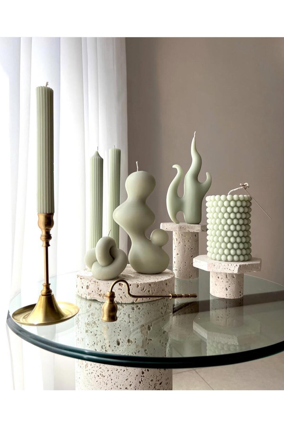 Dekoratif Mum Alev+Duyum+İnci+şamdanlık Mum +Eğlim Mum Mum Toplam 7 Parça