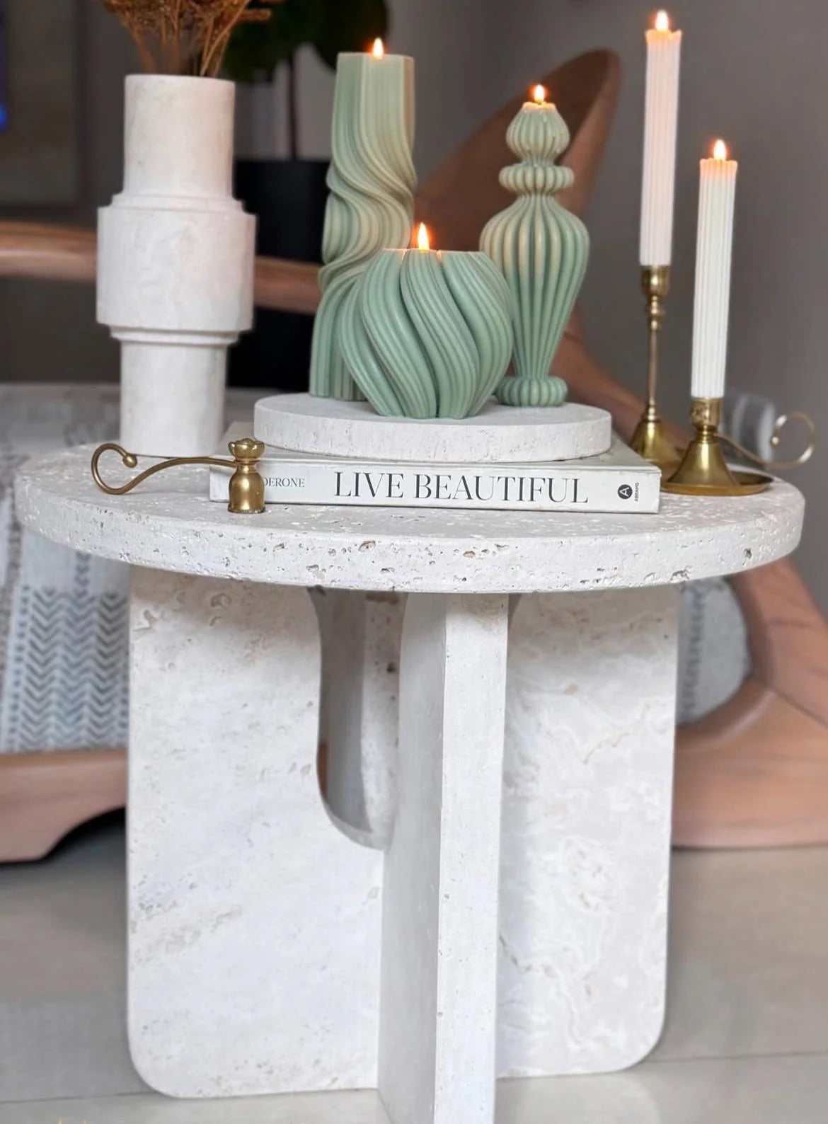 Dekoratif Mum Dalga 1 Adet +Marako Mum 1 Adet +Dalga Mum 1 Adet +Şamdanlık Mum 1 Adet - Toplam 5 Parça Takım