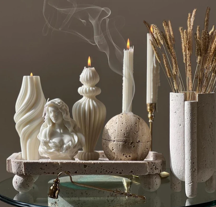 Dekoratif Mum Marako 1 Adet +Kadın Mum 1 Adet +Vazo Mum 1 Adet + Şamdan Mum 2 Adet - Toplam 5 Parça Takım