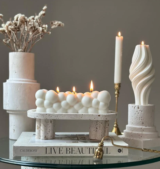 Dekoratif Top Model Mum 1 Adet + Burgu Mum 1 Adet + Şamdanlık Mum 1 Adet - Toplam 3 Parça Takım