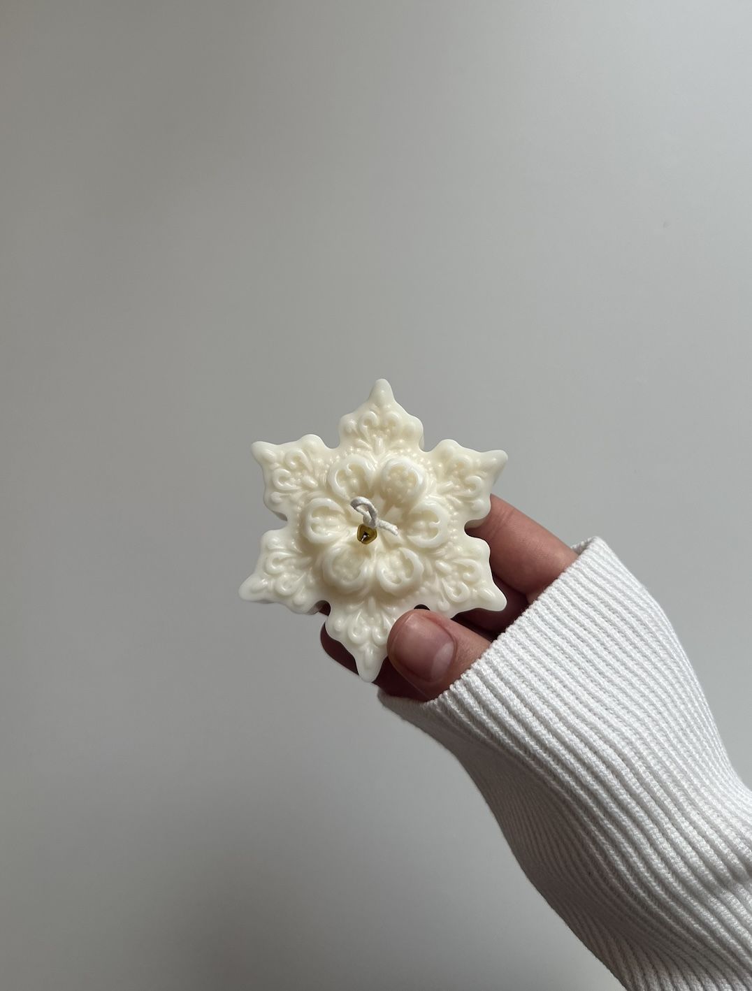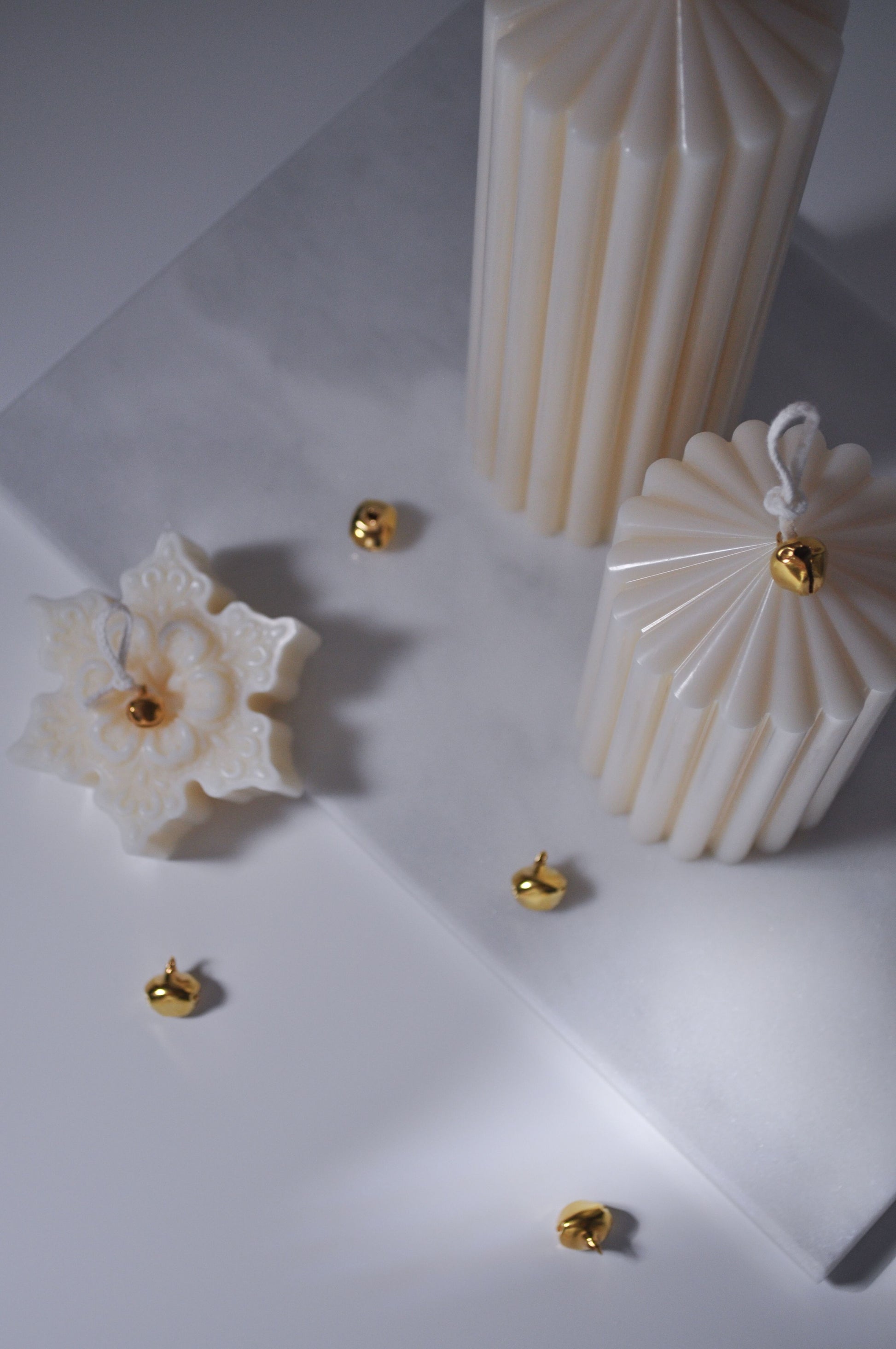 El Yapımı Kokusuz Çokgen Dekoratif Mum - Kar Tanesi Kırık Beyaz 3'lü