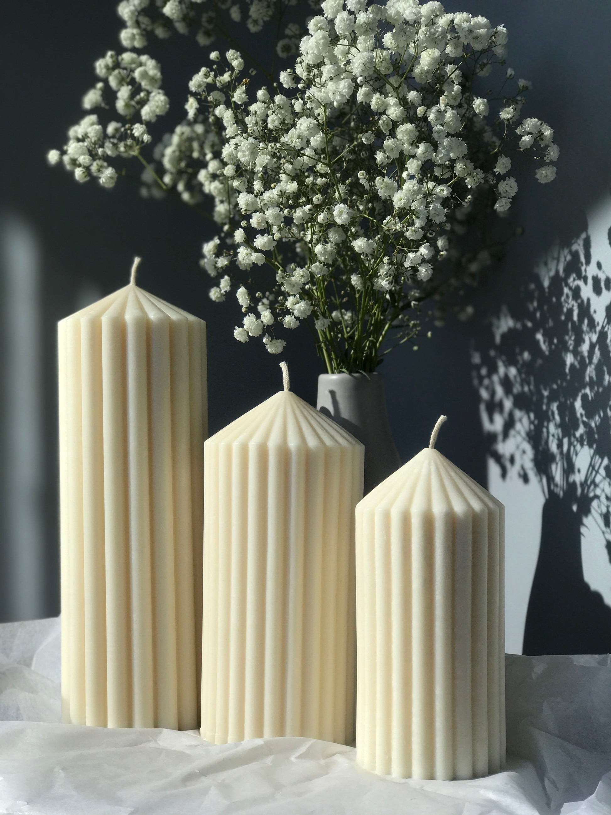 El Yapımı Kokusuz Çokgen Dekoratif Mum Kırık Beyaz 3'lü