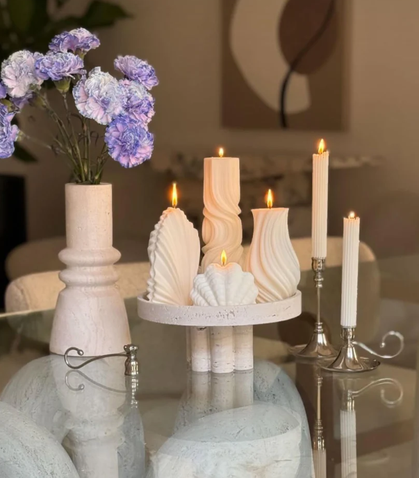 Palm 1 Adet +Dalgalı Mum 1 Adet +Vazo 1 Adet + Deniz Kabuğu 1 Adet + Şamdanlık Mum 2 Adet - Toplam 6 Parça Takım