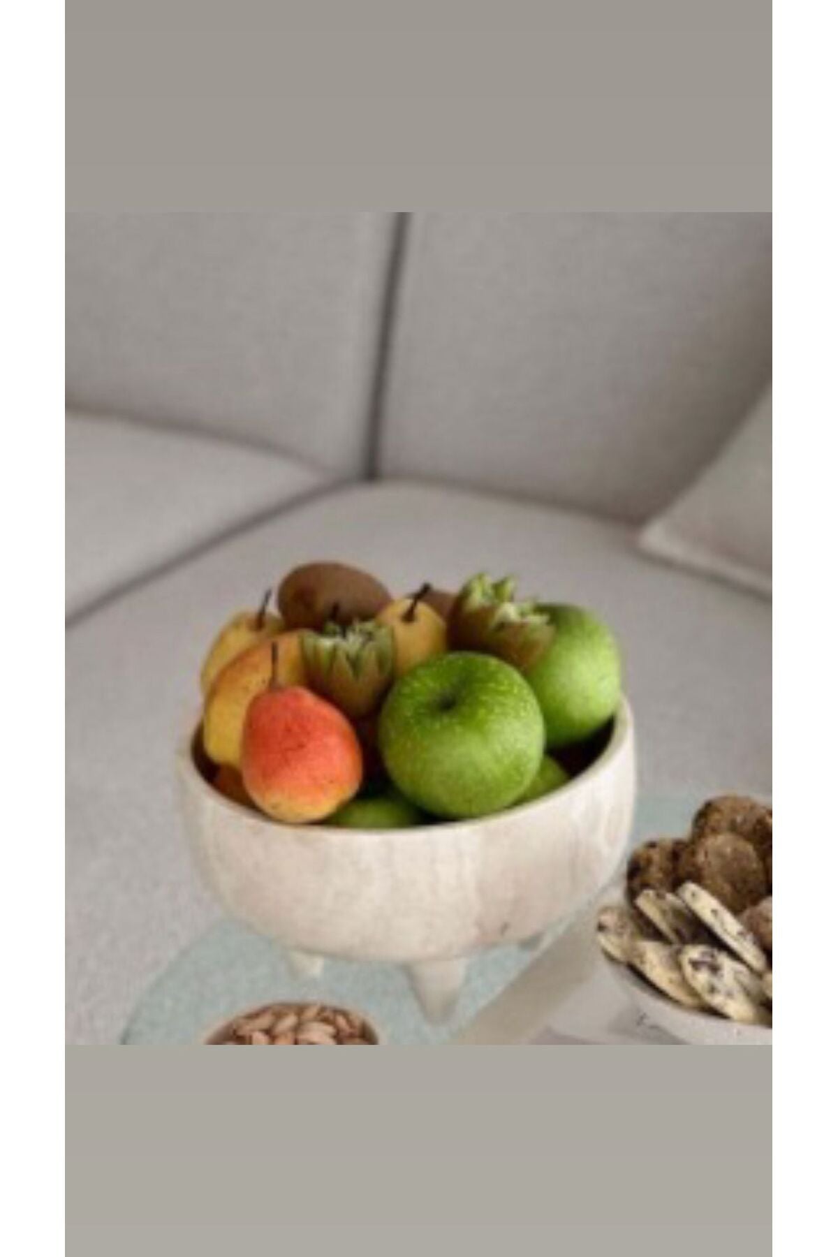 Yuvarlatılmış formu ve konik ayak tasarımı sayesinde hem modern hem de boho dekorasyon stilleriyle mükemmel uyum sağlar. Meyve, kuruyemiş veya dekoratif amaçlı kullanım için ideal olduğu gibi, tek başına sergilendiğinde de bulunduğu ortama sıcak ve premium bir atmosfer katar.