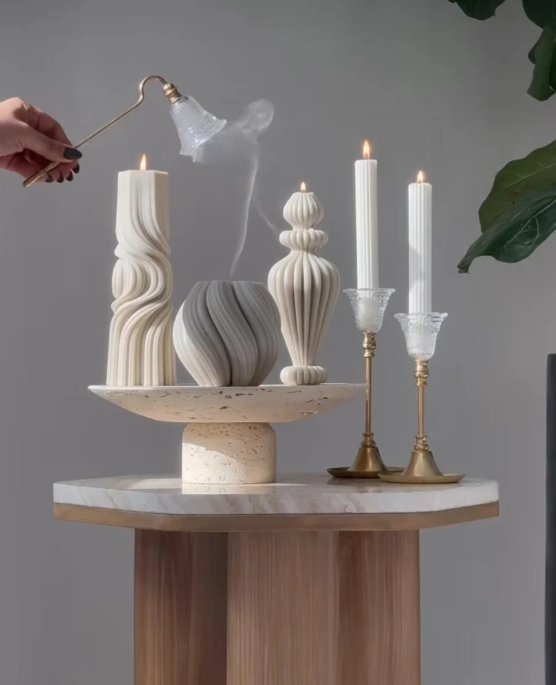 Şamdanlık Mum 2 Adet +Marako Model Vazo 1 Adet +Dalga Model Yuvarlak 1 Adet +Dalga Model 1 Adet - Toplam 5 Parça Takım